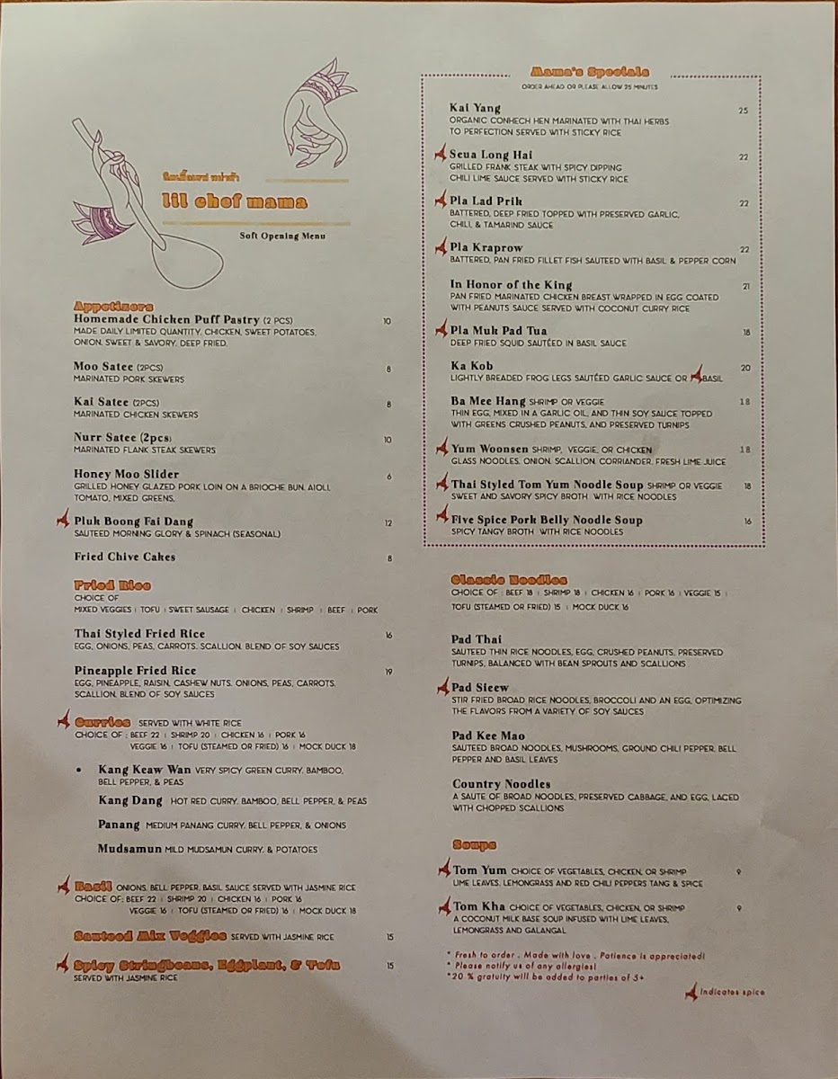 Welcome to Lil Chef Mama, a hidden gem located at 27 Cliff St, New York, NY 10038, where authentic Thai cuisine meets warm hospitality. Since 1982, this family-owned restaurant has been captivating guests with its flavorful offerings and cozy atmosphere. Highlights include the highly recommended Pad Thai and Pork Sliders, as well as a delightful Pineapple Fried Rice with Shrimp and Beef Red Curry. Diners rave about the flavors and freshness of each dish, making it a top choice for both locals and tourists alike.